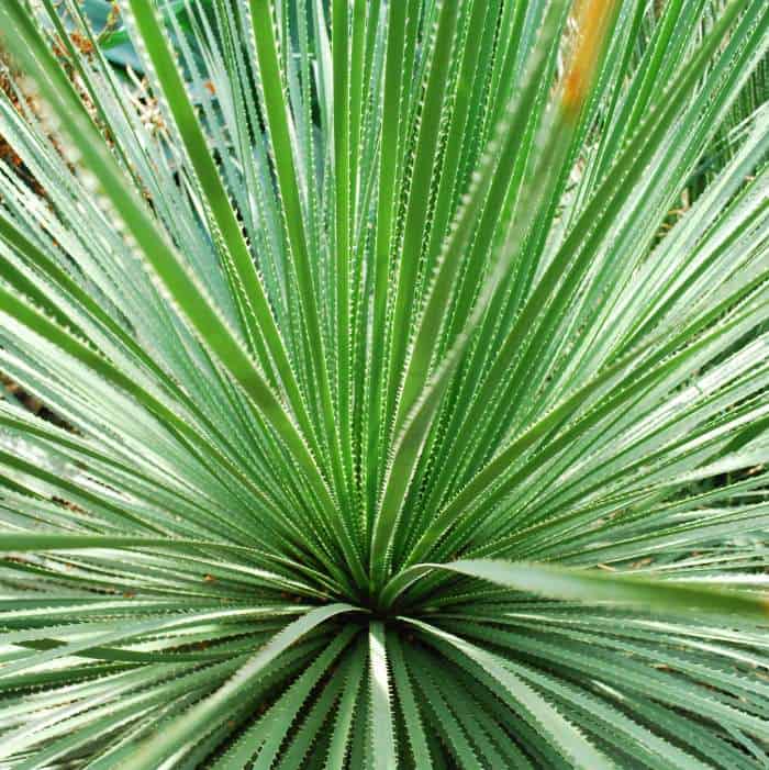 Forms a nearly spherical clump 3- 5 ft. high, 4 – 5 ft. wide. Spiky bluish gray leaves to 3 ft. long. Leaves slowly form a trunk to 3 ft. tall. Flowers appear on spikes in early summer. Tolerates nearly any soil, heat, or watering conditions.